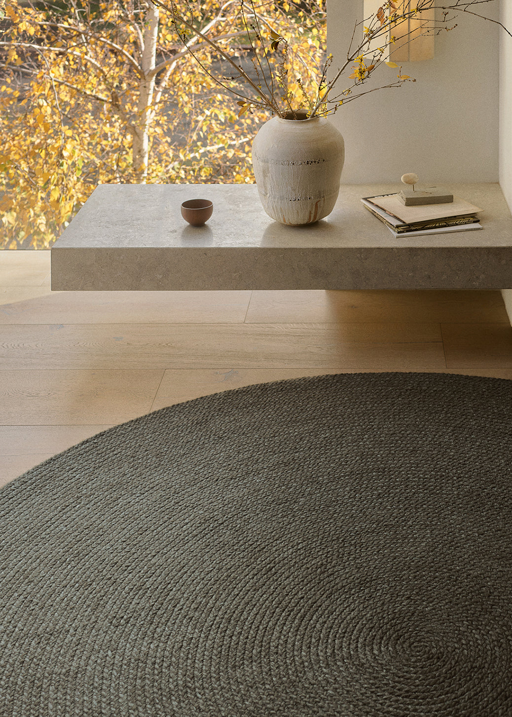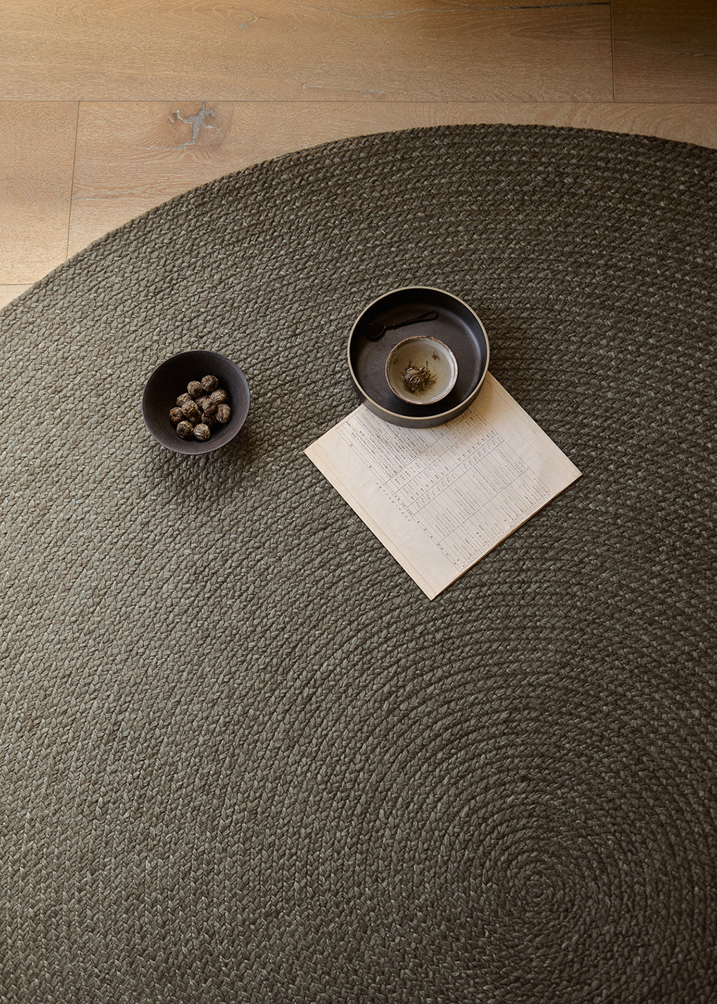 The Braid rug is hand-plaited from a luxurious wool-blend yarn that is carefully coiled then stitched into its circular form. Cloaked in vibrant yet elegant tones, the rug’s pairing of gentle curves and rippling texture brings harmony to the home, even when laid in the most unexpected of spaces.