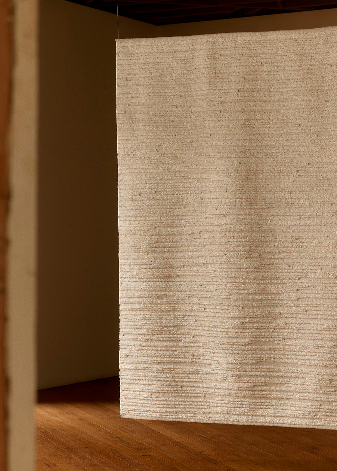 Richly textural, Cirrus is crafted from hand-knotted wool, enabling pillowy piles to rise above its base in an organically banded rhythm. Bound within an immaculate turnover, it conjures an air of quiet contemplation. Ideal for lounge rooms and bedrooms, cloud-soft landings nurture sensorial pleasure underfoot.
