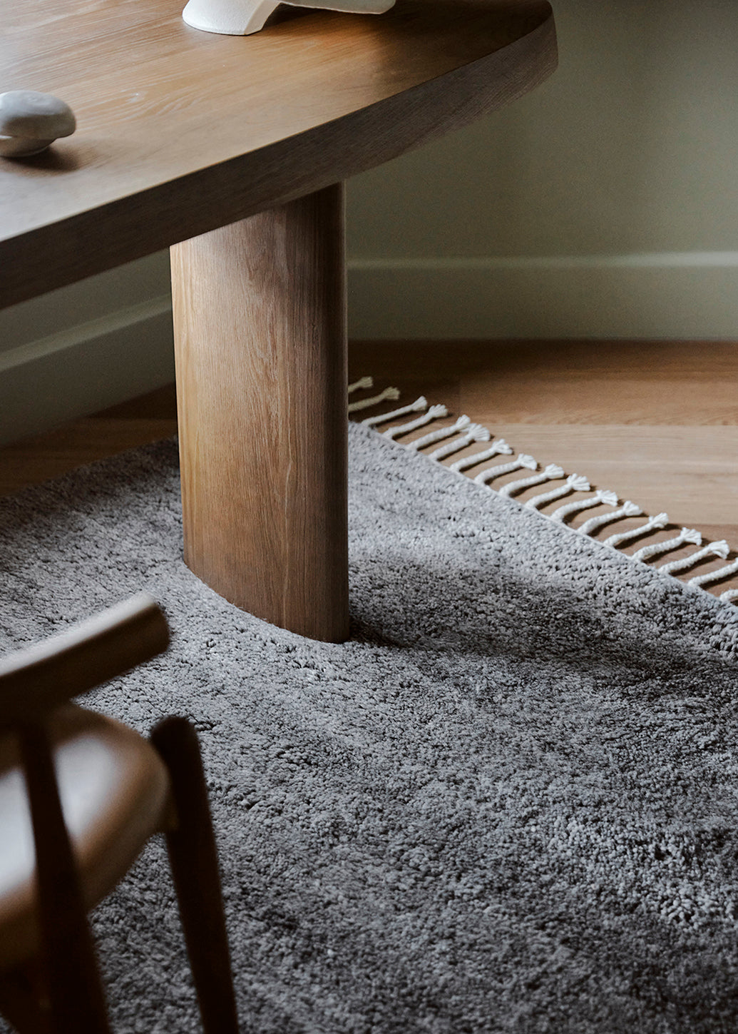 Framing the home for the practice of gentle rituals, this modern take on the traditional Berber-style rug oozes effortless luxury. Hand-knotted from New Zealand wool into a lush pile bookended by plaited tassels, the cloud-like surface has a meditative effect underfoot.