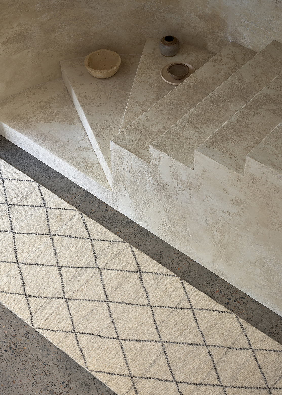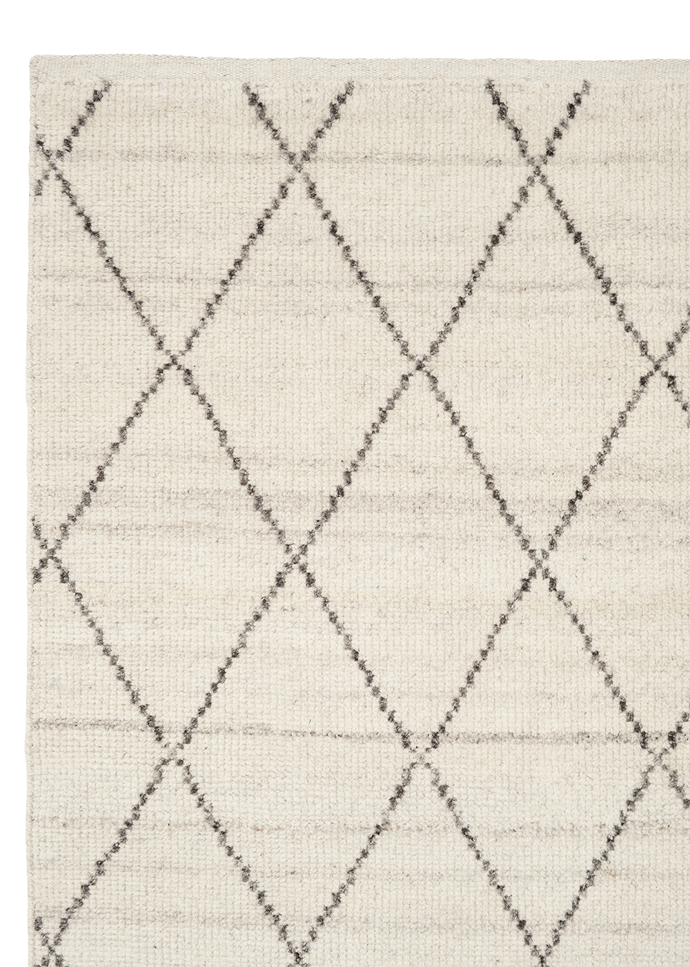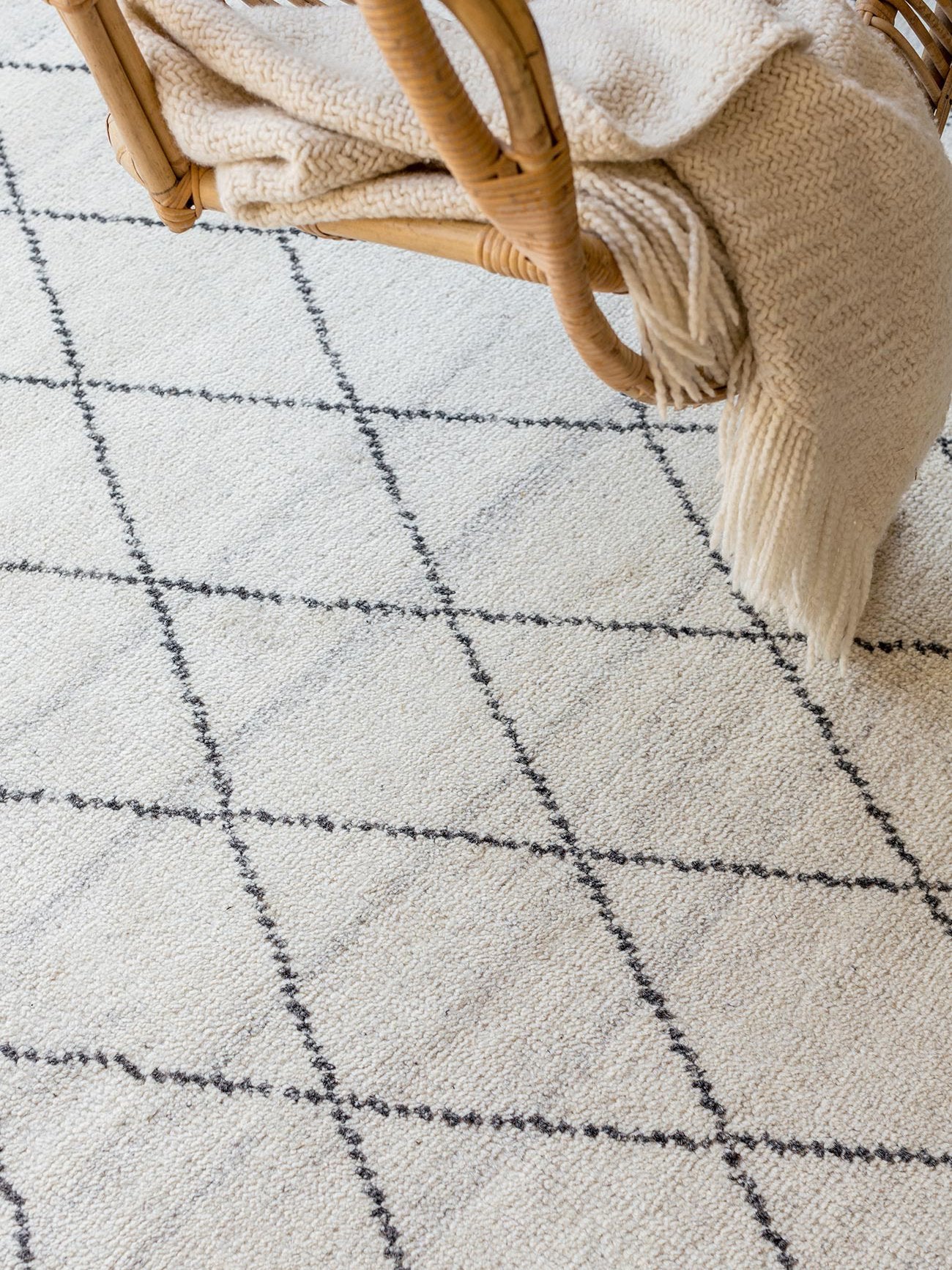 Taking its cue from traditional Moroccan beni ourain rugs, this timeless design features a simple diamond pattern that is hand-knotted into a low pile in soft, natural tones.
